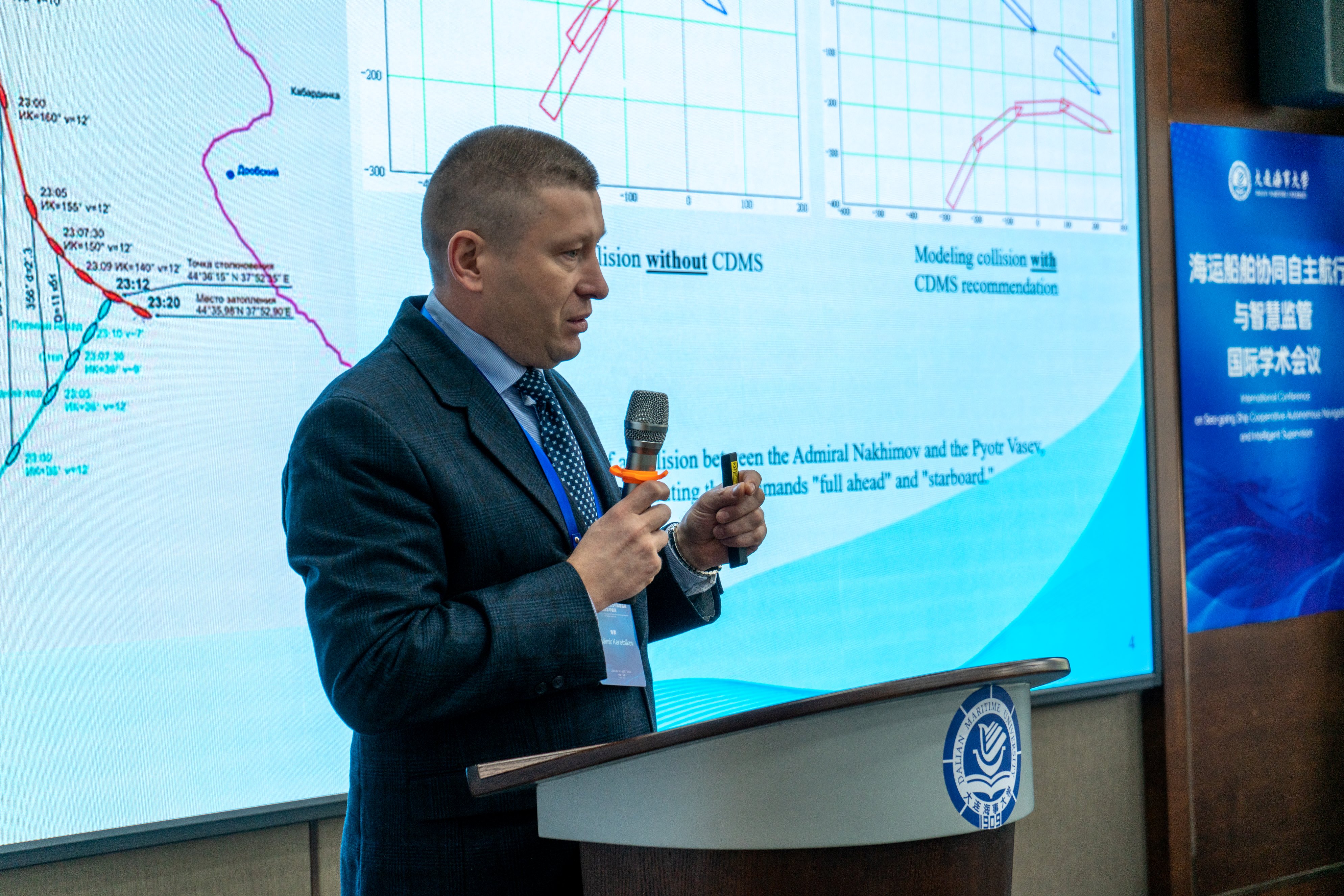 Мероприятие под названием «Seagoing Ship Cooperative Autonomous Navigation and Intelligent Supervision» было организовано Даляньским морским университетом, собрало более 50 специалистов из Китая, Великобритании, Финляндии и России. Тринадцать докладчиков представили свои разработки в области автономной навигации, дистанционного управления морскими судами в стесненных водах и узкостях, новом поколении систем управления морским трафиком, методах выбора и оптимизации маршрутов, обмена маршрутными данными между судами, в том числе автономными, и береговыми системами управления движением, обработки и использовании метеорологической информации при оптимизации маршрутов плавания судов в автономном режиме.