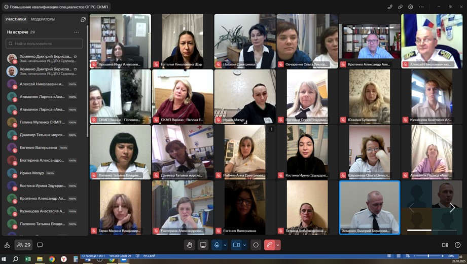 Для обсуждения рассматриваемых вопросов курса повышения квалификации, компетентного рассмотрения различных аспектов деятельности отделов государственной регистрации были привлечены специалисты Российского морского регистра судоходства, АМП Балтийского моря и ФГБОУ ВО «ГУМРФ имени адмирала С. О. Макарова». Занятия проходили в гибридном формате – очно с возможностью подключения по видео-конференц-связи.