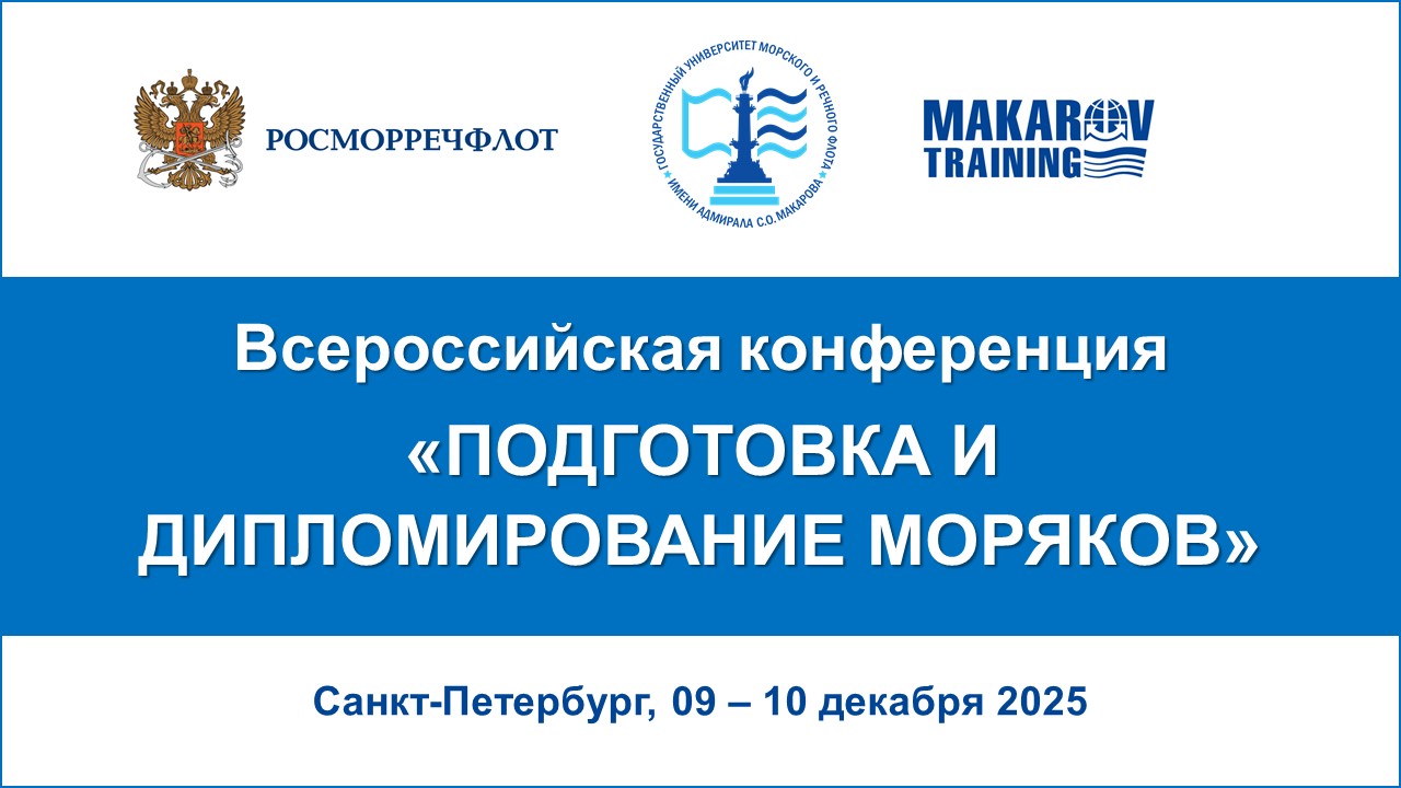 С 09 по 10 декабря 2025 года в Санкт-Петербурге на площадке Макаровки состоится конференция «Подготовка и дипломирование моряков» по вопросам организации, методики подготовки и повышения квалификации, а также дипломирования членов экипажей морских судов, особенностям, проблемам и перспективам развития. Ее организует ФГБОУ ВО «ГУМРФ имени адмирала С.О. Макарова» по согласованию с Федеральным агентством морского и речного транспорта.
